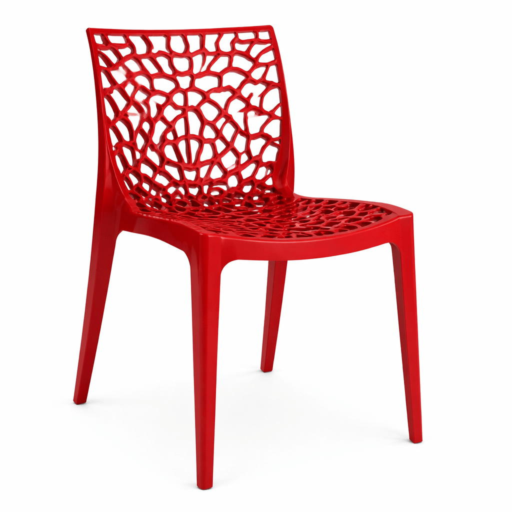 Silla Gruvyer fabricada en polipropileno brillante y un diseño de patrón de tela de araña.