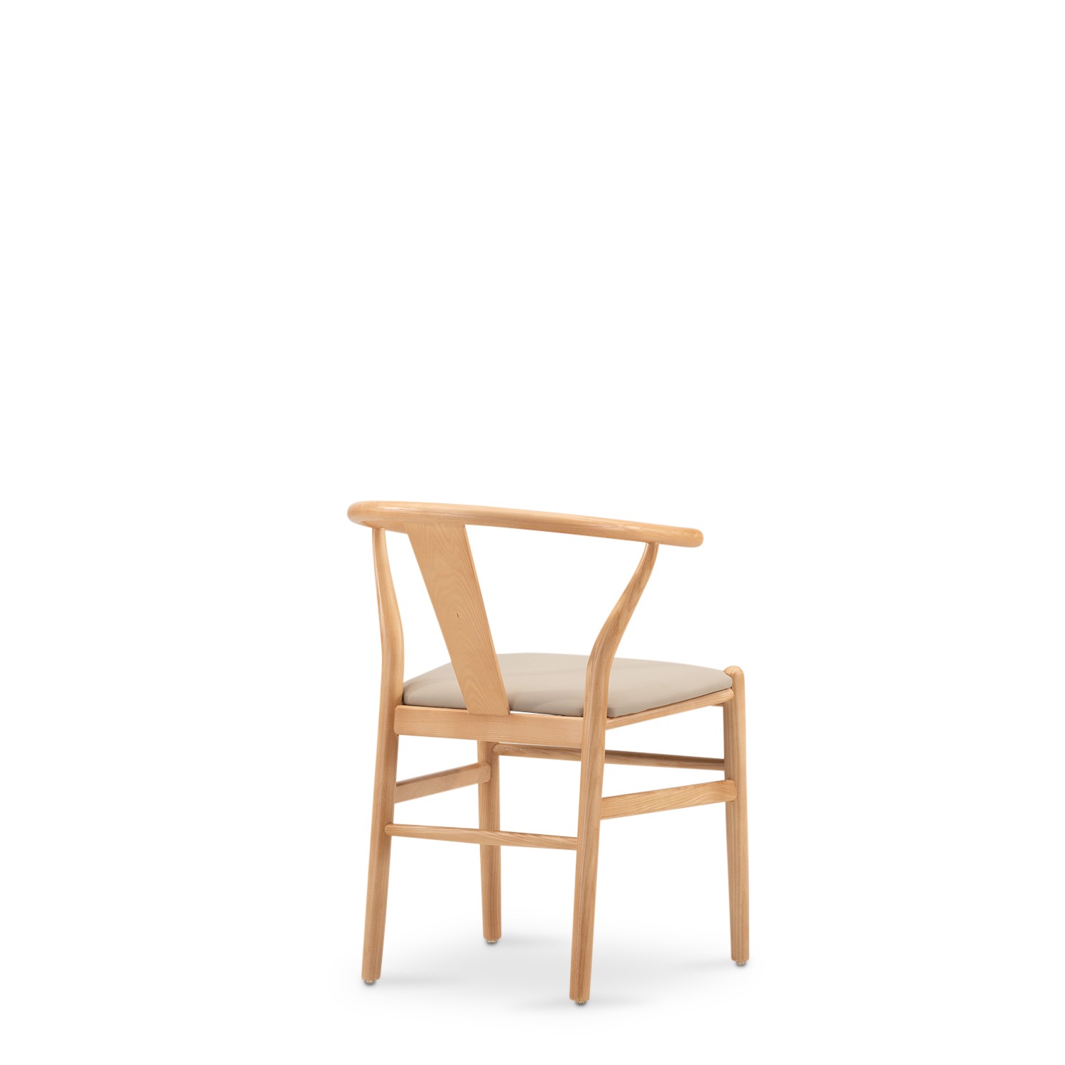 Silla Harald con estructura en madera de fresno, asiento compuesto por cojín relleno de fibra siliconada y funda de poliuretano (PU) waterproof.