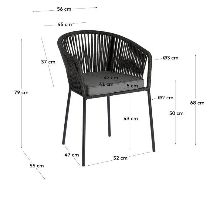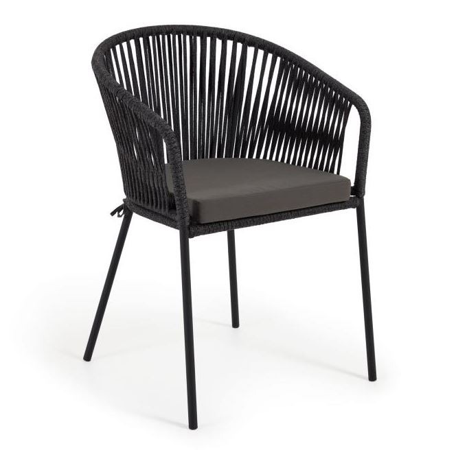 La silla JENNY, en cuerda color negro y patas en acero galvanizado.