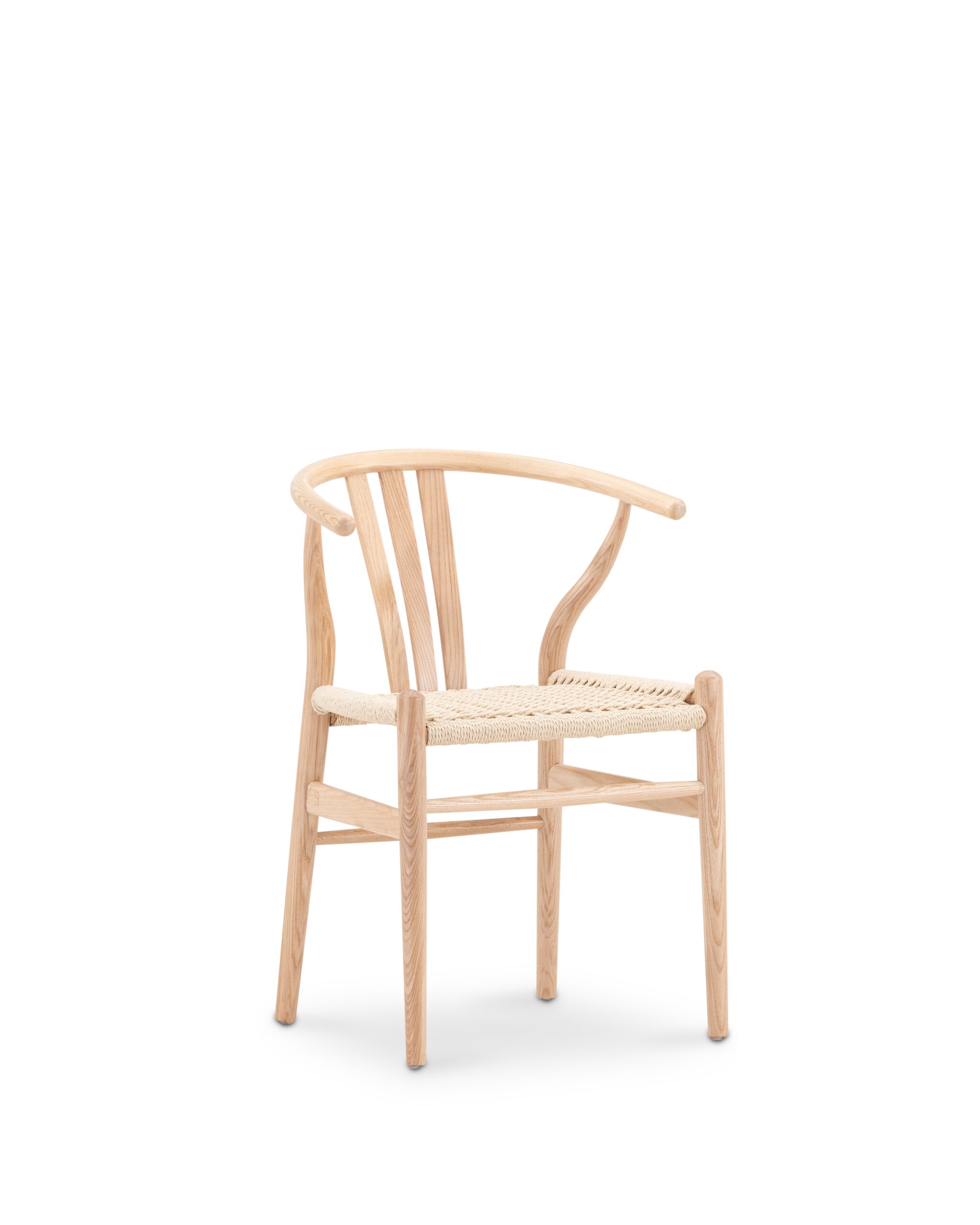 La silla Wanda con estructura en madera de fresno, asiento trenzado color natural, es una pieza perfecta para usar en cualquier tipo de estancia, aportando elegancia y comodidad.