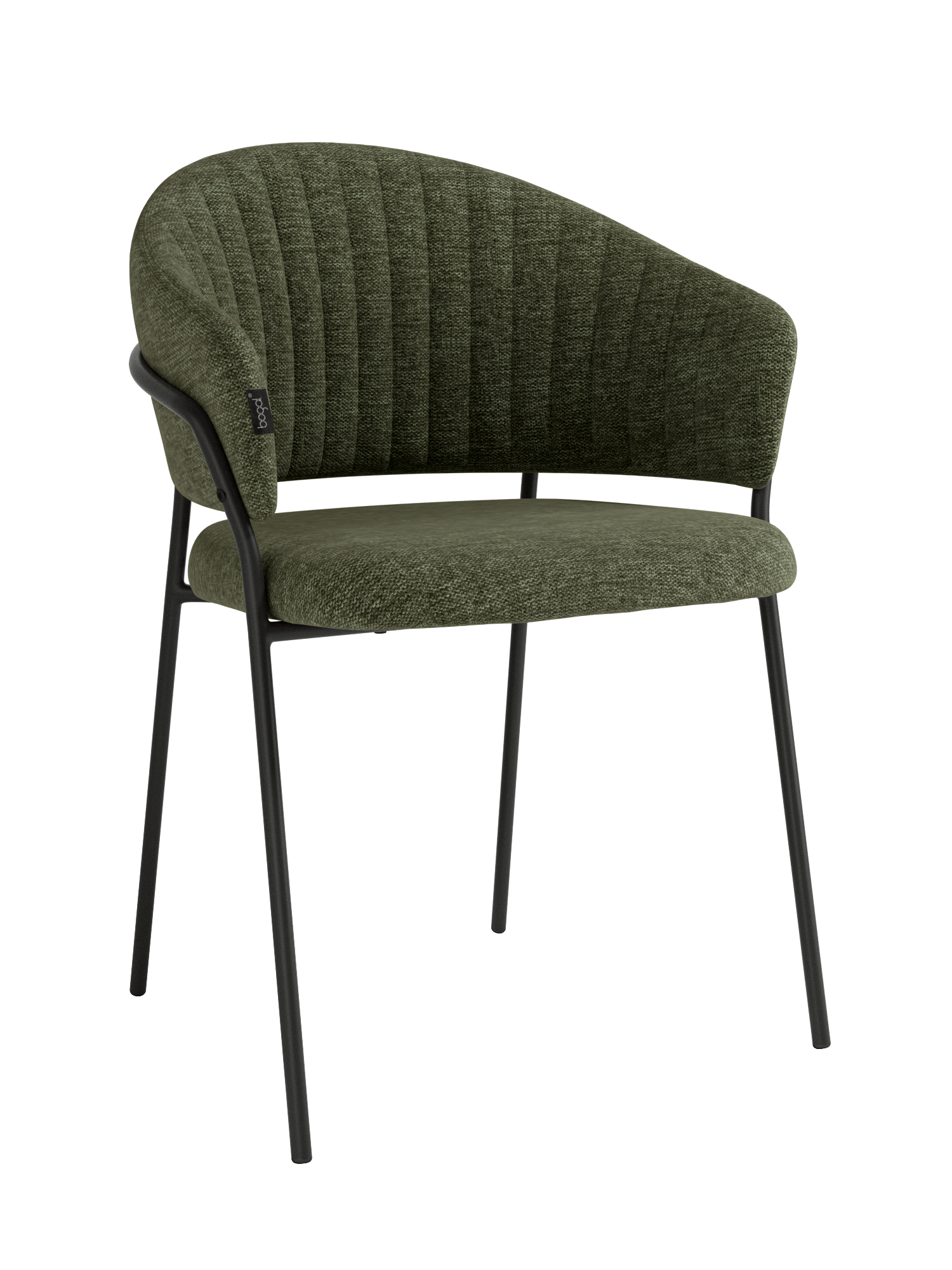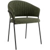 Fabricada con asiento y respaldo tapizados y patas en metal negro.