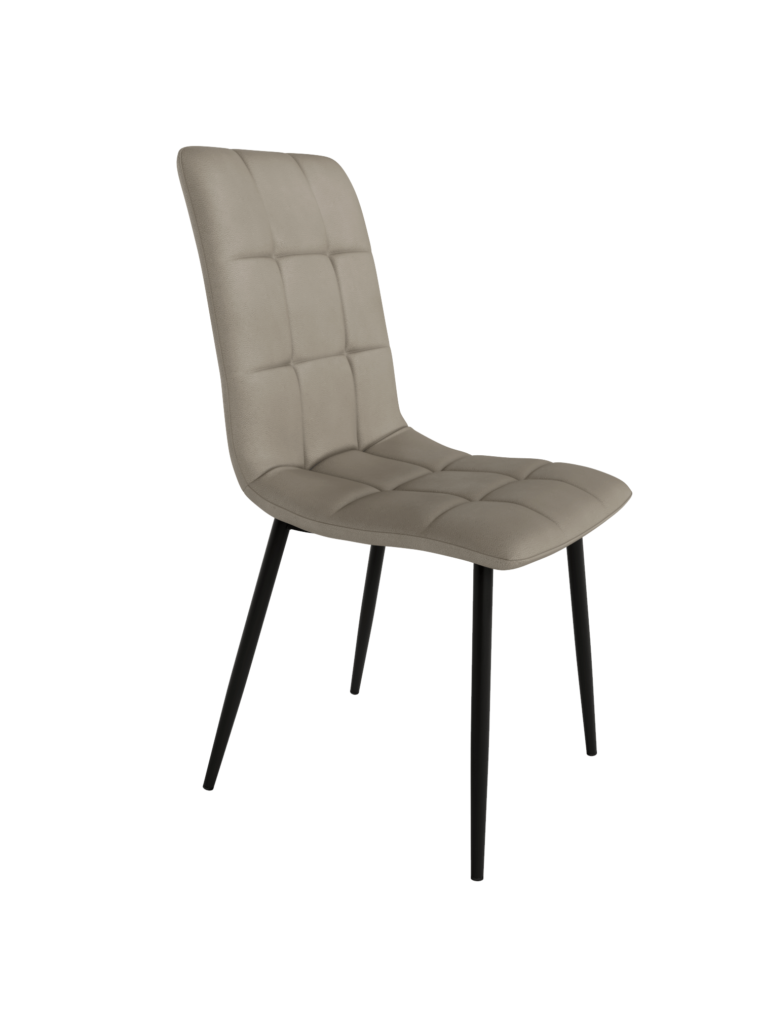 Silla Lisboa con asiento y respaldo tapizados y patas metálicas en negro.  .