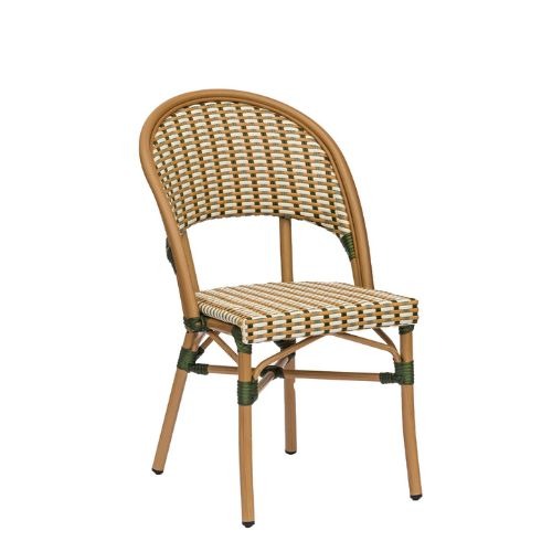 Silla Louvre fabricada en aluminio pintado y acabado trenzado.