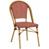 Silla M1201G fabricada en aluminio imitación caña y asiento a cuadros color granate y crema de médula sintética.
