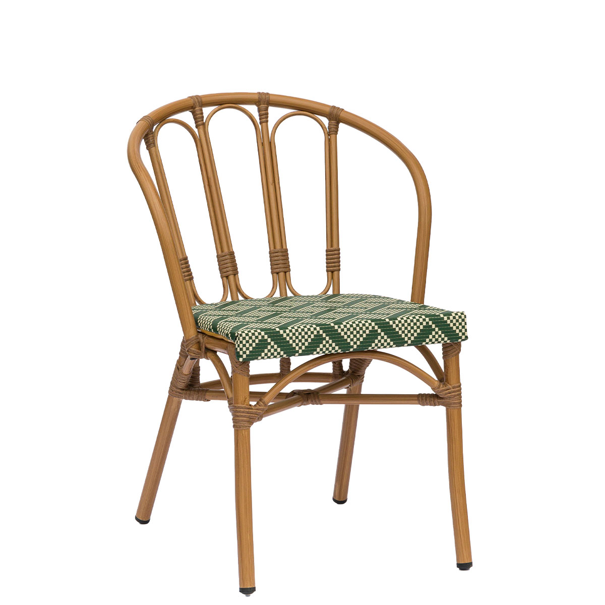 Silla Nassau fabricada en aluminio pintado y textiline tribeca verde.