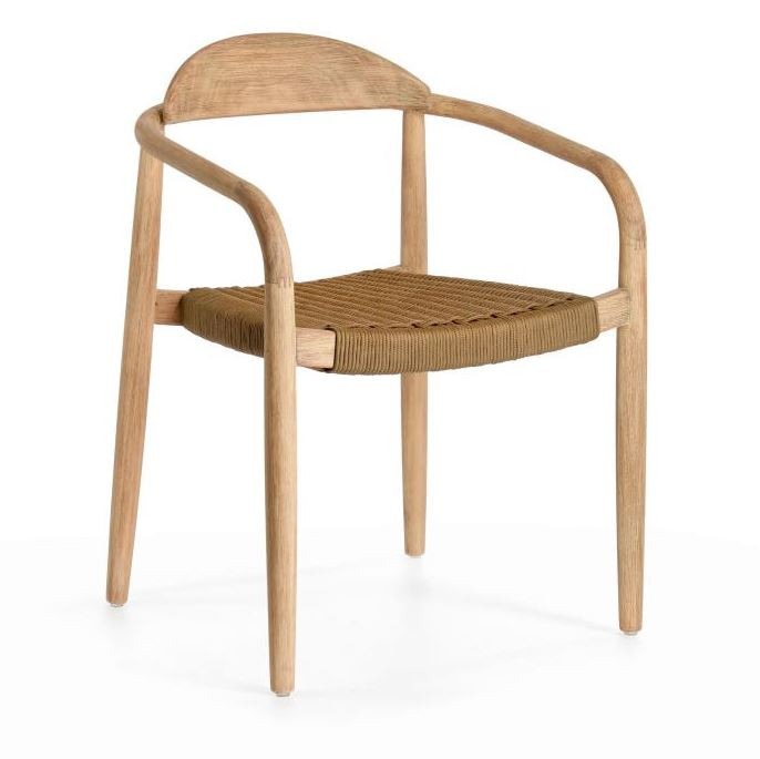 La silla en madera maciza de acacia y en cuerda, color beige, da un toque especial para hoteles, restaurantes, bares y cafeterías.