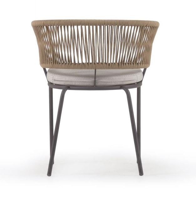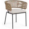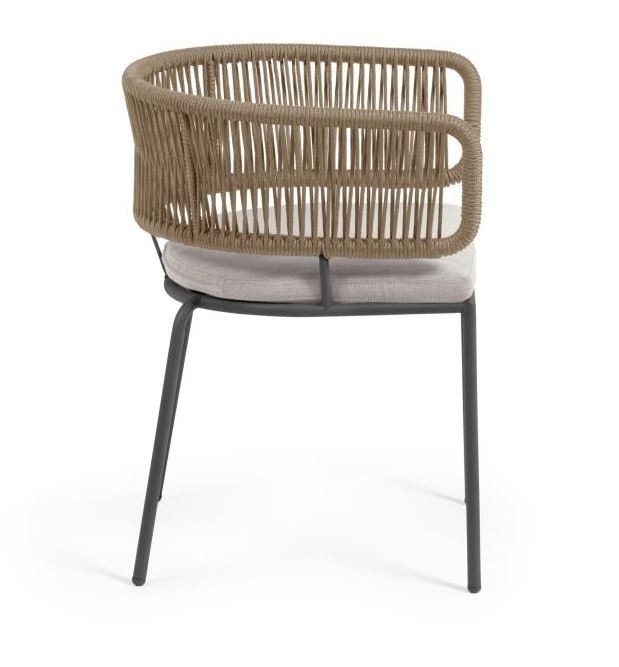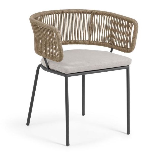 La silla NORA, en cuerda color beige y patas en acero galvanizado.