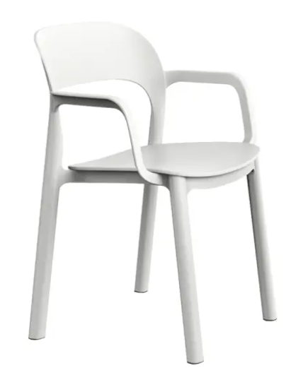 Silla Ona con brazos de Resol fabricada en polipropileno y fibra de vidrio.