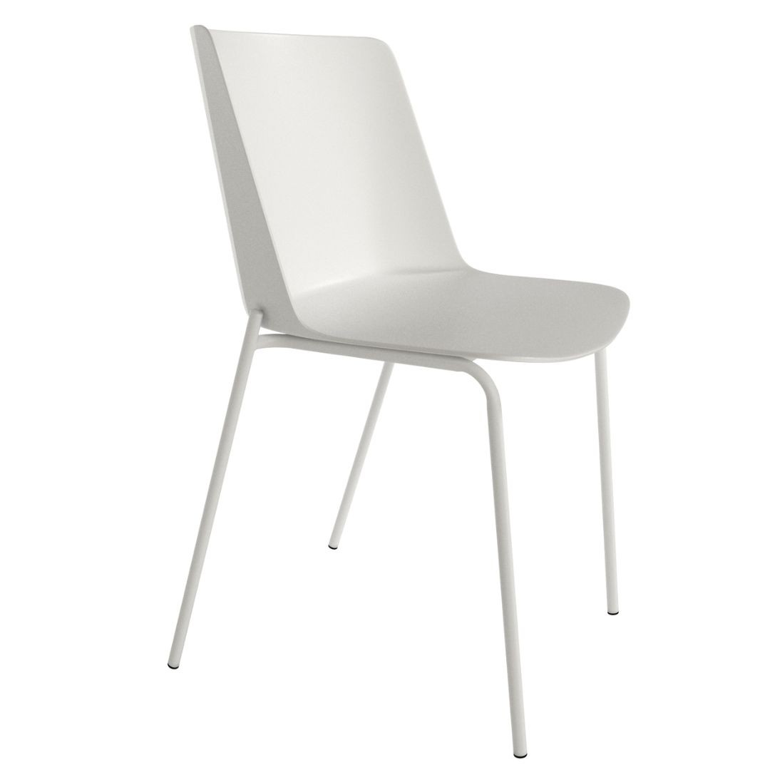 Silla Orlando en color blanco, fabricada en polipropileno y patas metal a juego.