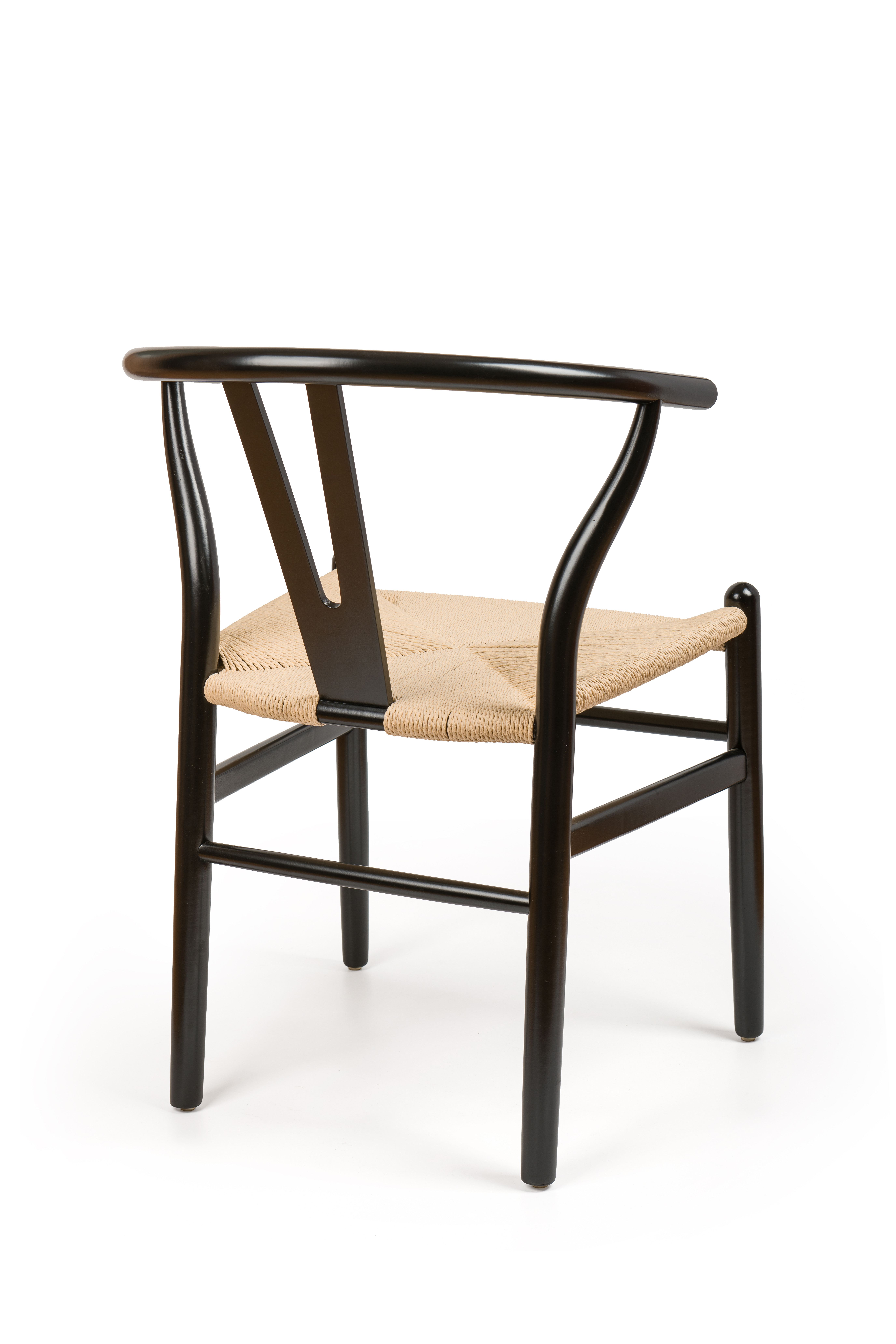 Sillón Oslo con estructura en madera de haya en color negro, asiento trenzado con hilo kraft, waterproof.