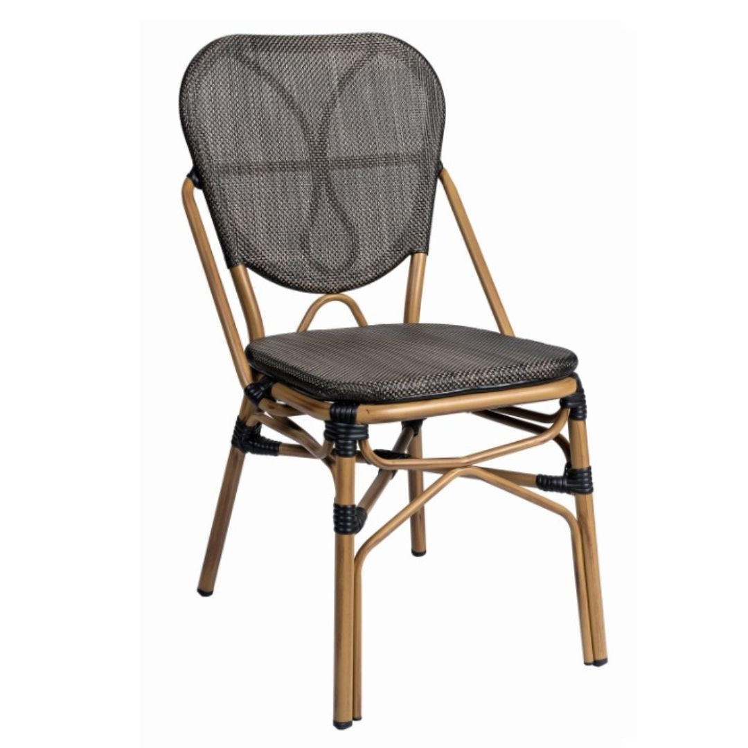 Silla Palais fabricada en aluminio deco bambú y trenzado negro.
