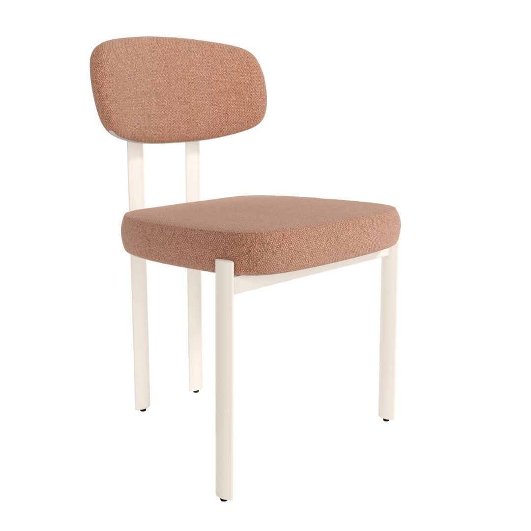 Silla Pretoria en color salmón, con asiento y respaldo tapizado y patas metálicas marfil.