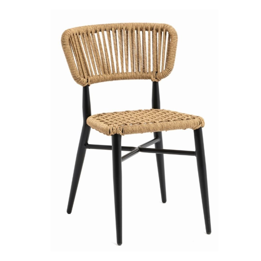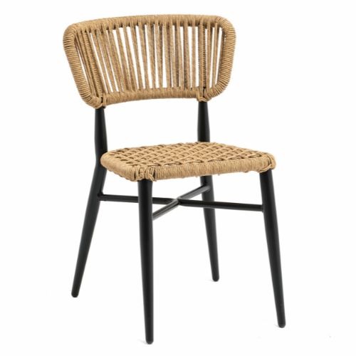 Silla Provenza fabricada en aluminio negro y cuerda en color crema.