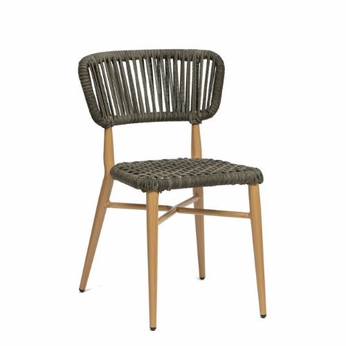 Silla Provenza fabricada en aluminio roble deco natural y cuerda en color gris.