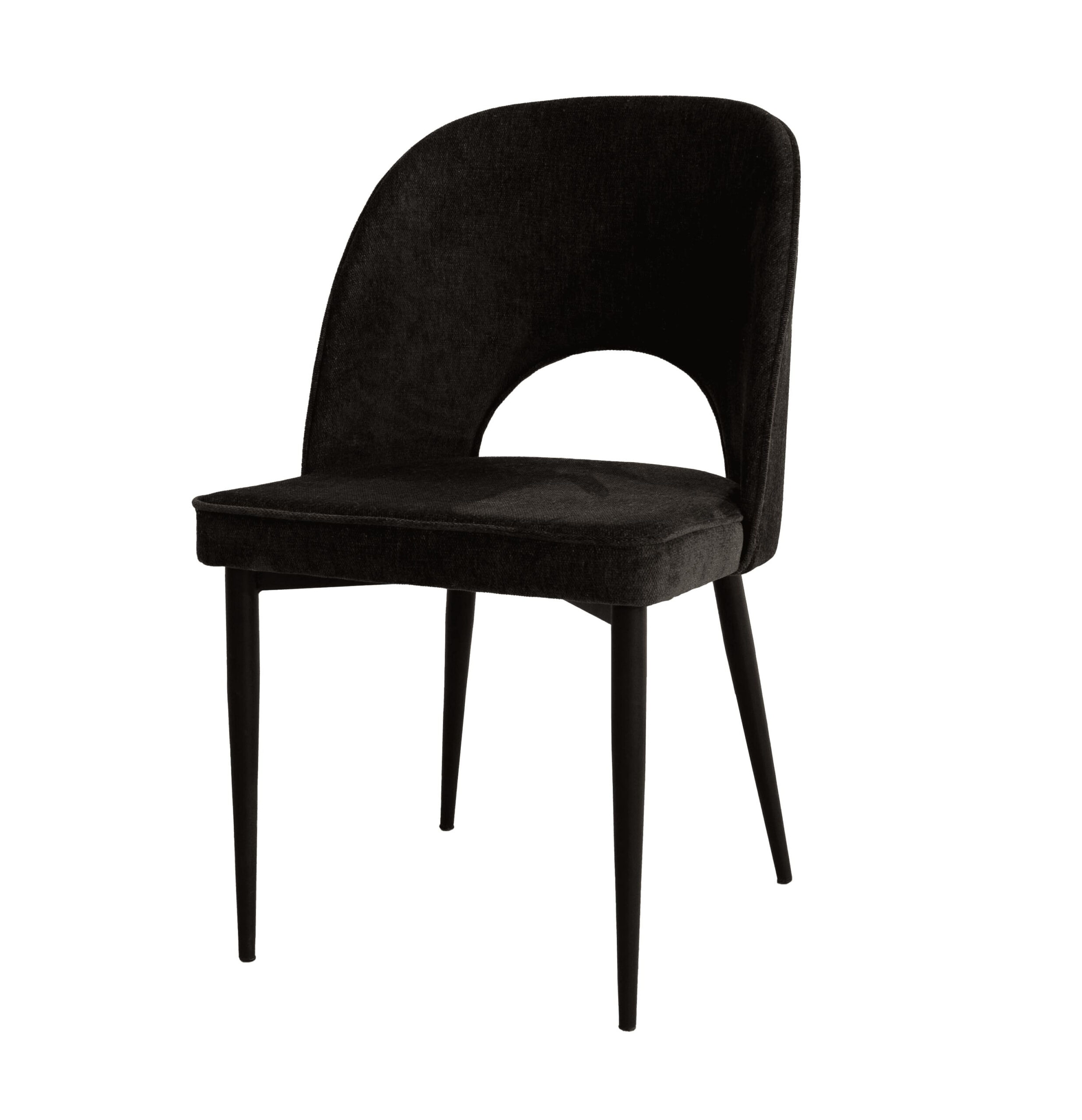 La silla Reine fabricada patas cónicas en acero negro y tejido en poliéster azul, es ideal para restaurantes que quieran dar un toque sofisticado.