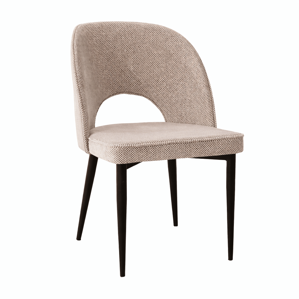 La silla Reine fabricada patas cónicas en acero negro y tejido en poliéster crudo, es ideal para restaurantes que quieran dar un toque elegante.