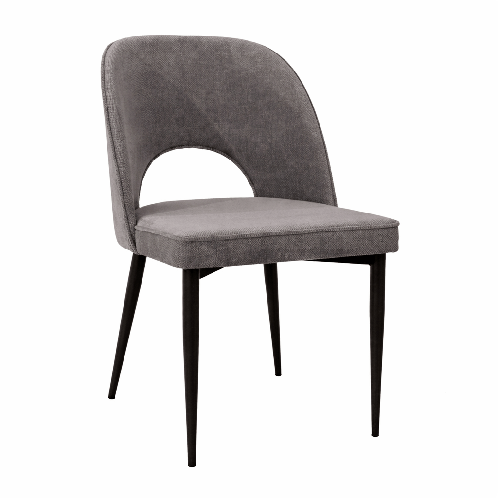 Silla Reine fabricada con patas cónicas en acero negro y tejido en poliéster gris.