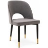 La silla Reine fabricada patas cónicas en acero negro y taco dorado y tejido en poliéster verde y beige, es ideal para restaurantes que quieran dar un toque moderno e innovador.