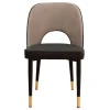 Silla Reine tapizada verde-beige patas cónicas taco dorado