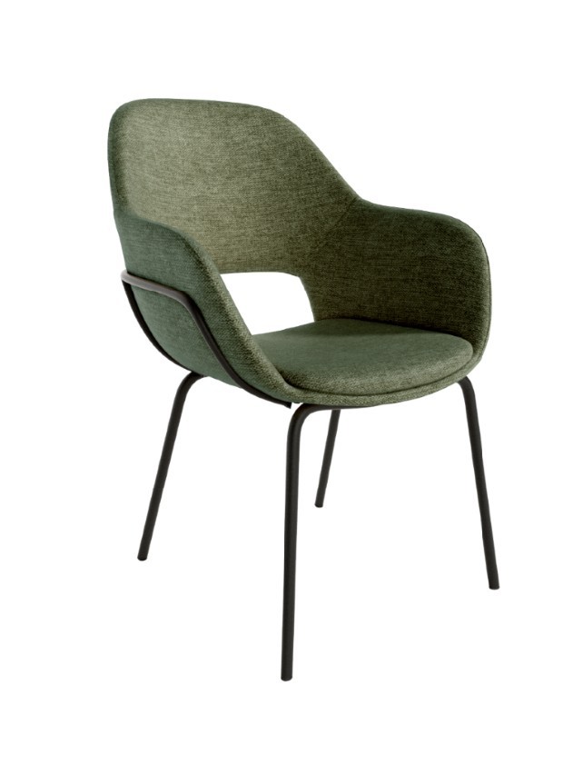 Silla con brazos Sidney con asiento y respaldo tapizados y patas metálicas en negro. .