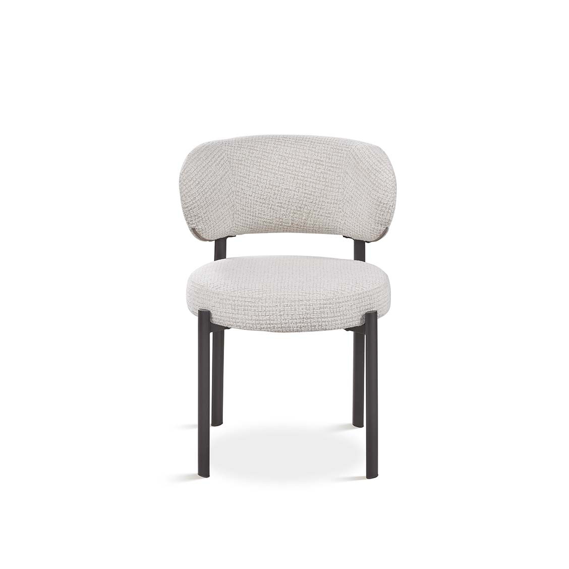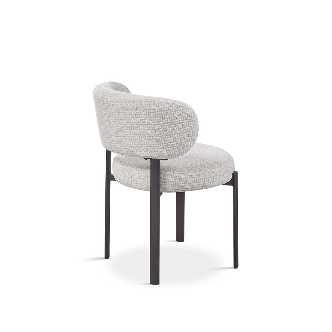 Silla sin brazos en metal negra y tela color blanco de estilo moderno y elegante.