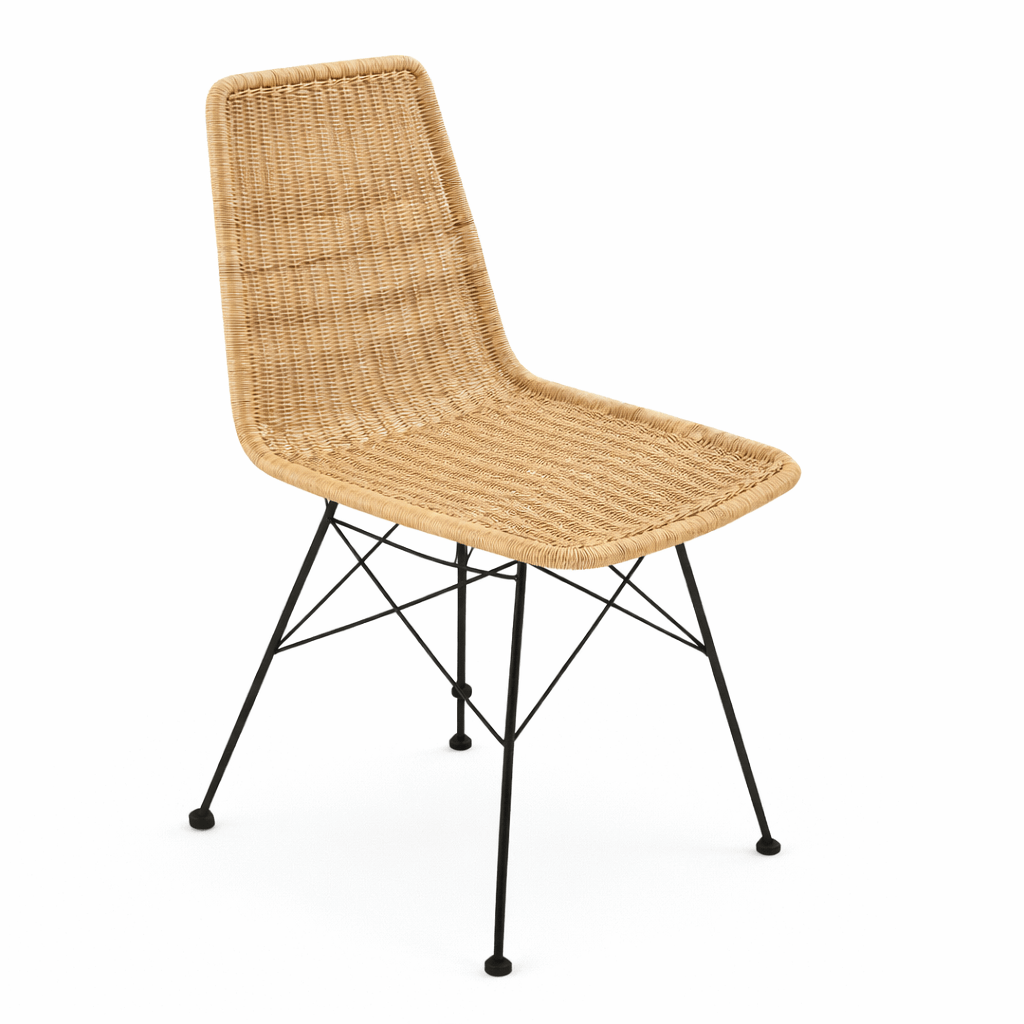 Silla Sweet con estructura galvanizada en negro y asiento en mimbre sintético en color natural.