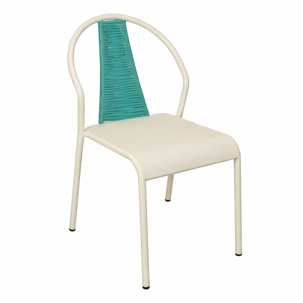 La silla Trento con estructura de aluminio pintado y respaldo trenzado, es una pieza elegante y moderna perfecta para cualquier jardín o terraza.