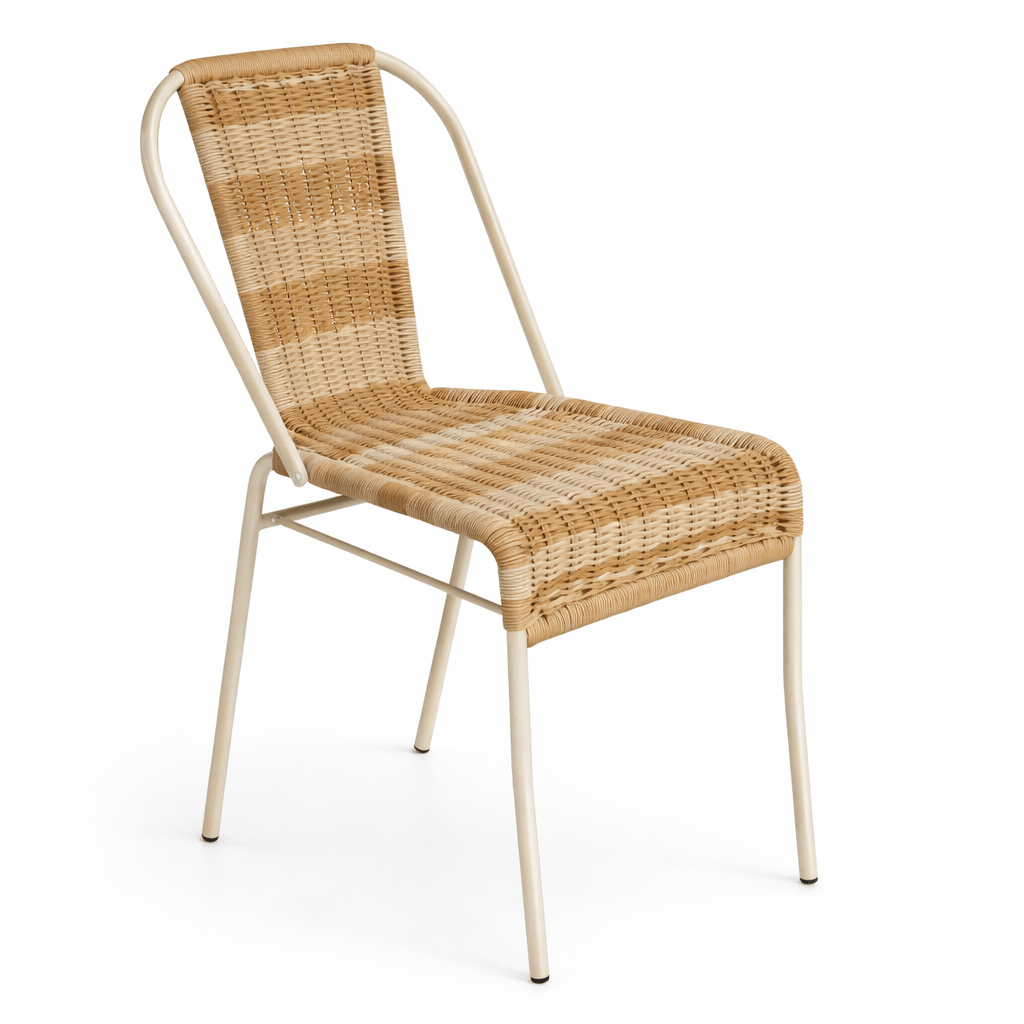 Silla Paris con estructura de acero asiento y respaldo trenzado.