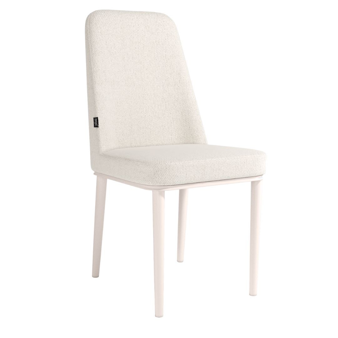 Silla Tromso en color nacar, con asiento y respaldo tapizado y patas metálicas marfil.