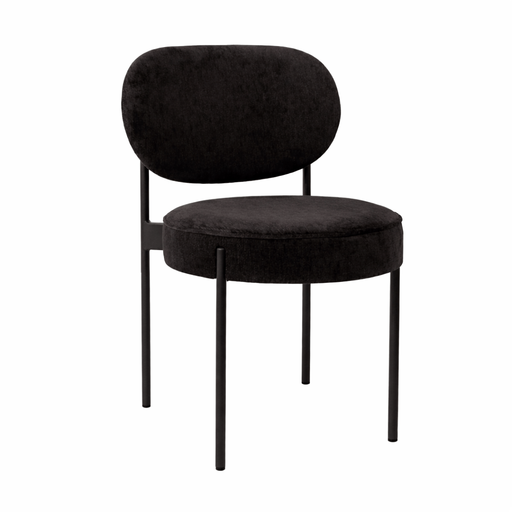 Silla Undreal verde tapizada 100% en poliéster, con carcasa curvada fabricada en madera de haya y estructura de acero lacado texturizado negro.
