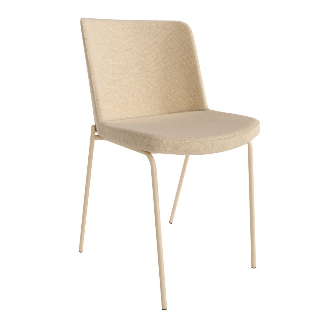 La silla York tapizada con patas metálicas a juego, es una combinación elegante y funcional perfecta para espacios como comedores, oficinas o zonas de espera.