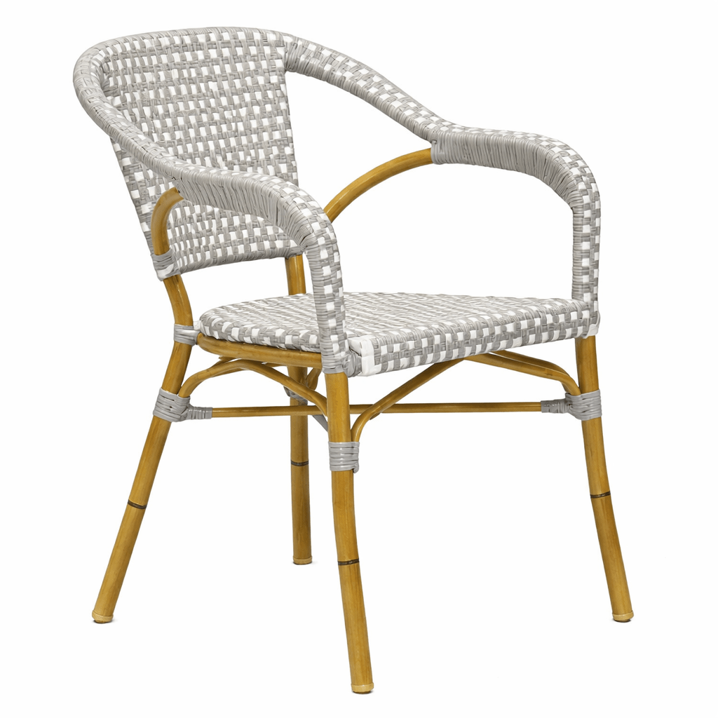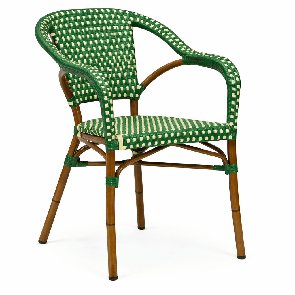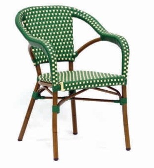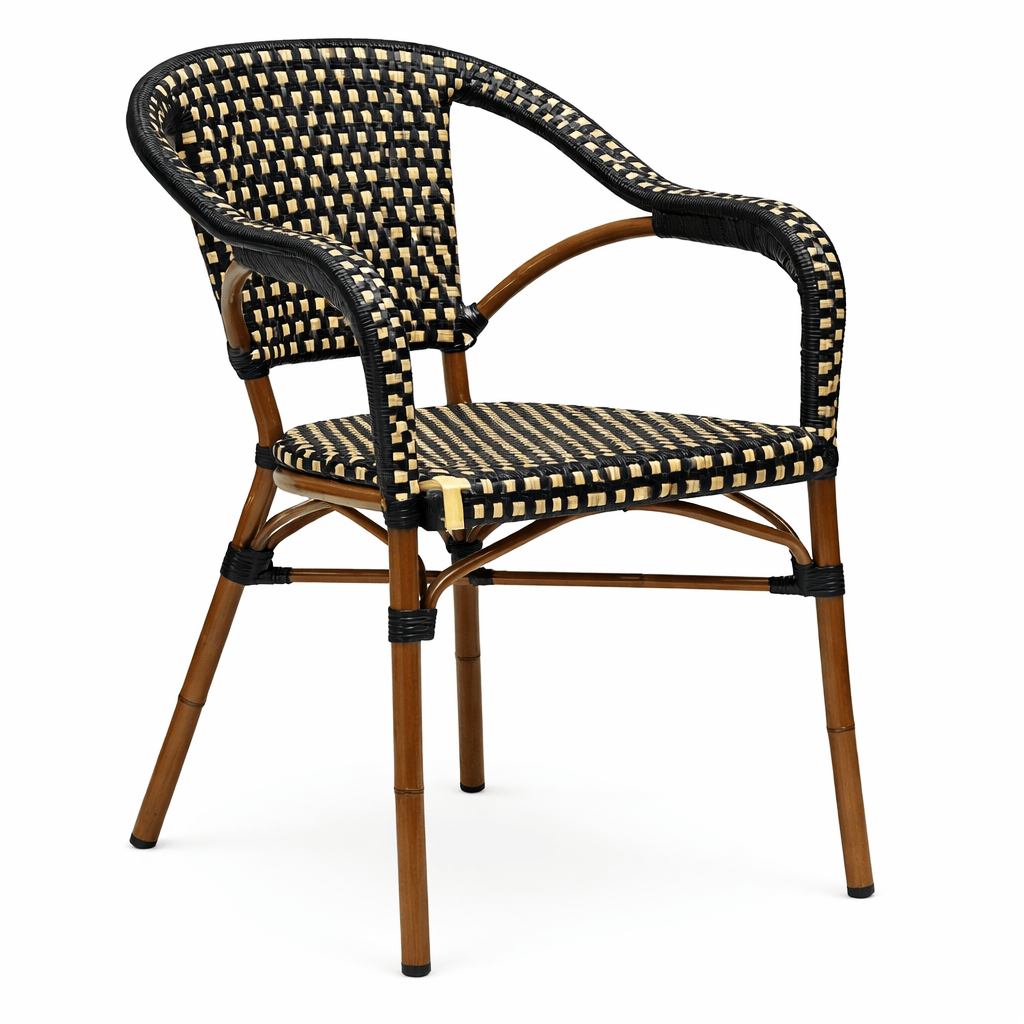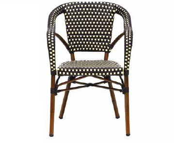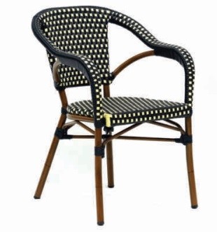 El sillón Arles está fabricado con la estructura en aluminio, asiento y respaldo en rattan sintético. Resulta un modelo de sillón inspirado en los bistrot de Francia, por lo que queda ideal en bares y restaurantes que quieran dar un aire parisino.
