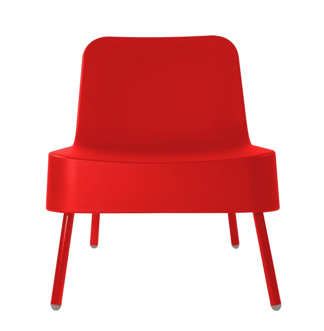Sillón Bob en rojo de Resol, en polietileno rotomoldeado y patas de aluminio.