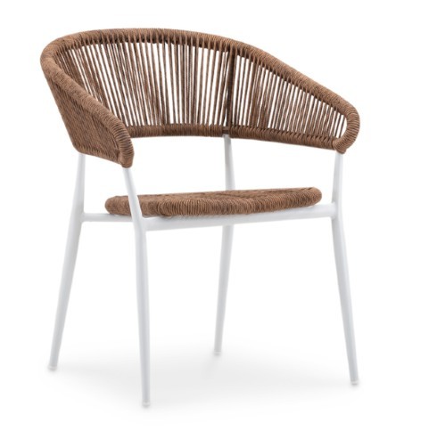 El sillón Cintha con estructura color blanco, con asiento y respaldo en color marrón es una pieza perfecta para usar en cualquier tipo de estancia, aportando elegancia y comodidad.