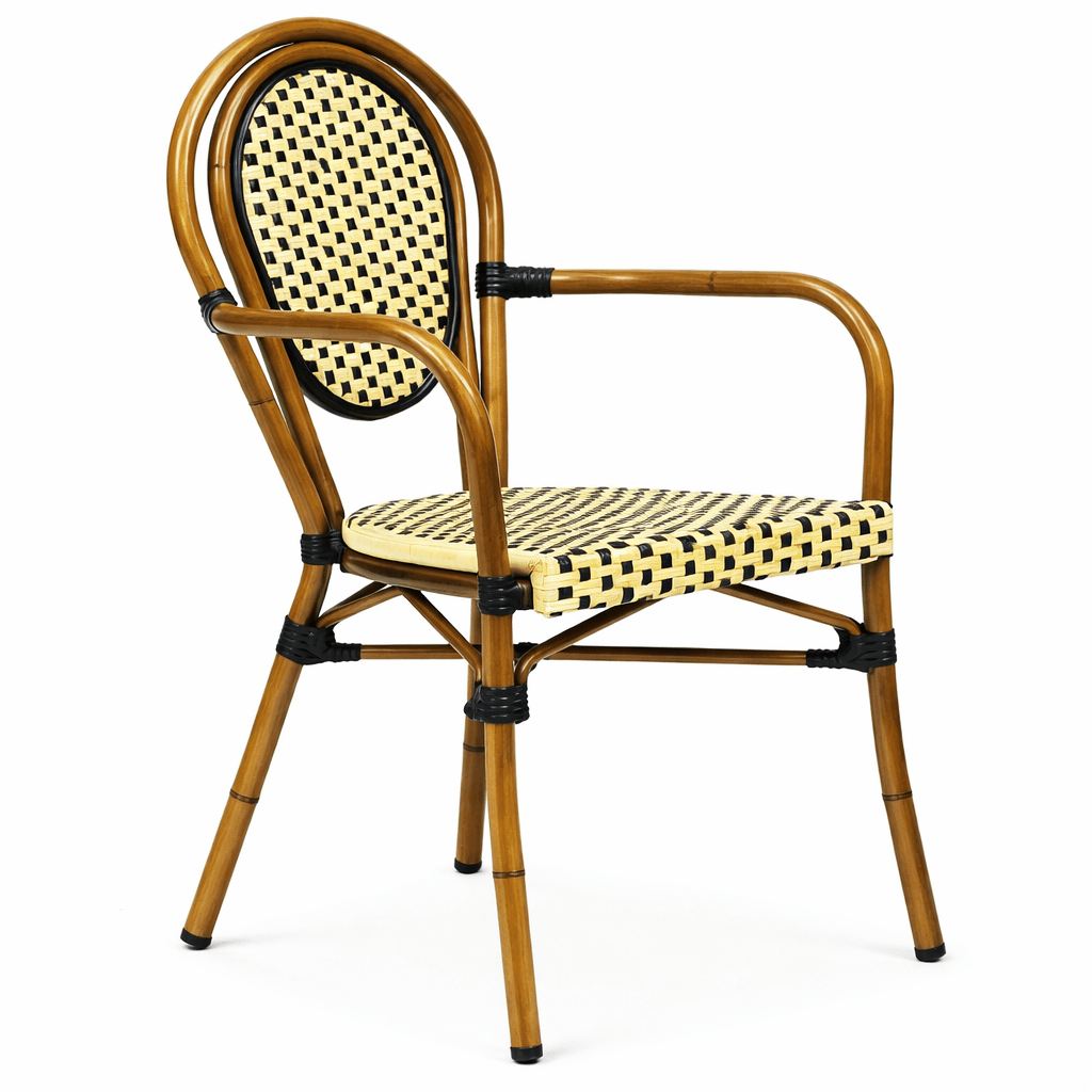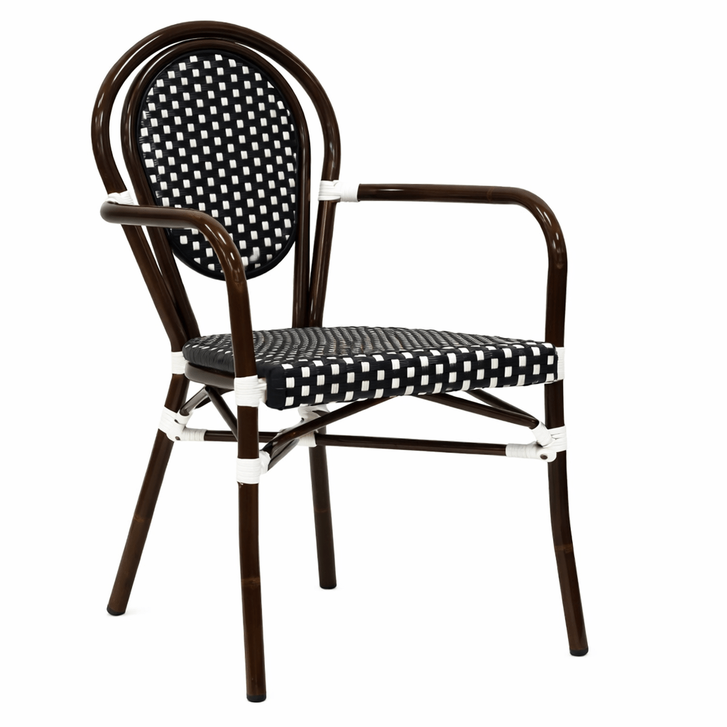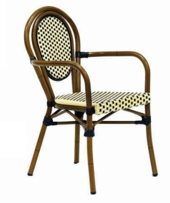 El sillón Dijon está fabricado con la estructura en aluminio y asiento y respaldo en rattan sintético. Resulta un modelo de sillón inspirado en los bistrot de Francia, por lo que queda ideal en bares y restaurantes que quieran dar un aire parisino.