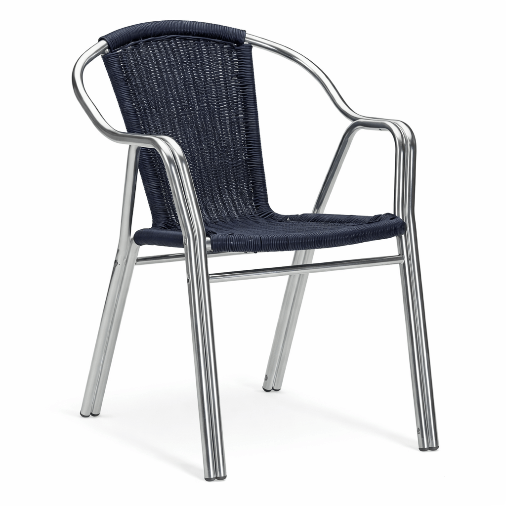 El sillón Double está fabricado con la estructura en aluminio, asiento y respaldo trenzado doble. Resulta un modelo de sillón muy ligero,por lo que es ideal en terrazas de restaurante y hotel.