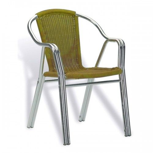El sillón Double está fabricado con la estructura en aluminio, asiento y respaldo trenzado doble. Resulta un modelo de sillón muy ligero, por lo que es ideal en terrazas de restaurante y hotel.