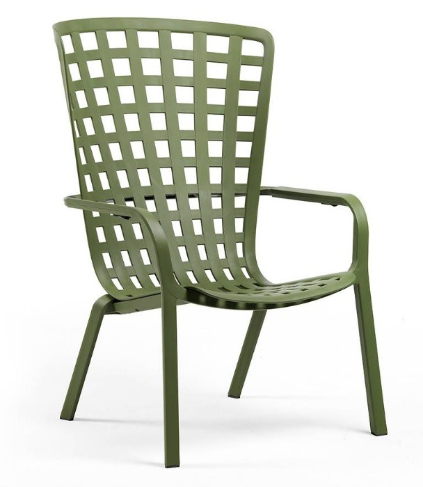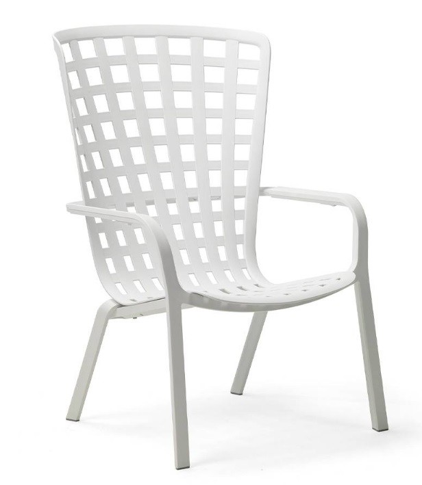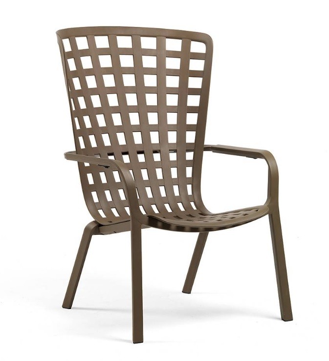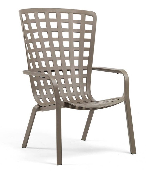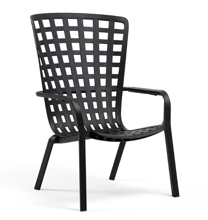 El sillón con brazos Folio de Nardi está  fabricado en polipropileno y fibra de vidrio tratado anti UV y teñido en masa.