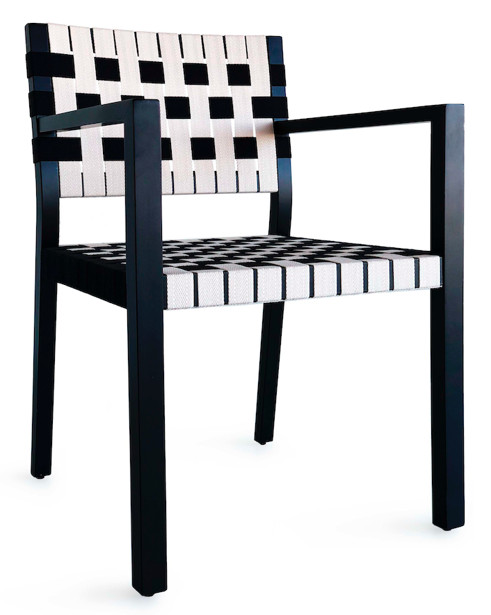 Asiento y respaldo trenzado con cincha de poliéster de 4 cm.