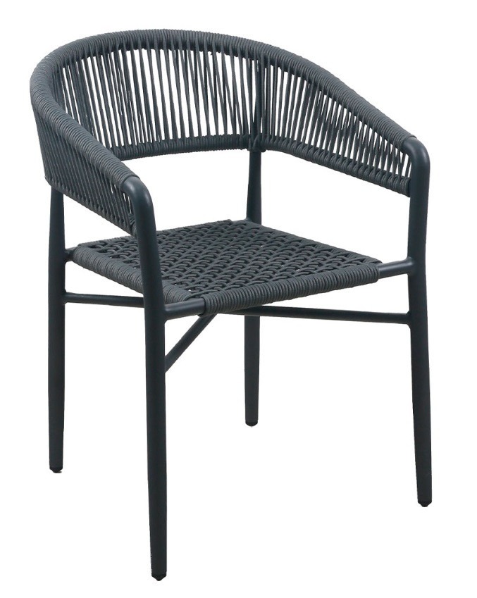 Sillón Lapa, fabricado en aluminio pintado en color antracita y cuerda.