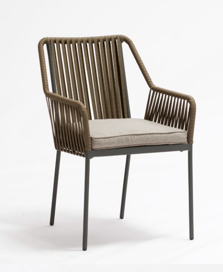 El sillón Lua estructura color gris, con asiento y respaldo en cuerda textiline color taupes perfecto para cualquier tipo de estancia aportando elegancia y comodidad.