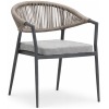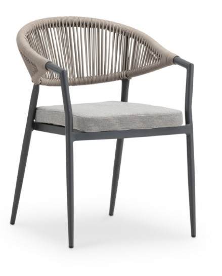 El sillón Mark con estructura en aluminio color antracita, con asiento y respaldo trenzado en rattan sintético en color arena es una pieza perfecta para usar en cualquier tipo de estancia, aportando elegancia y comodidad.