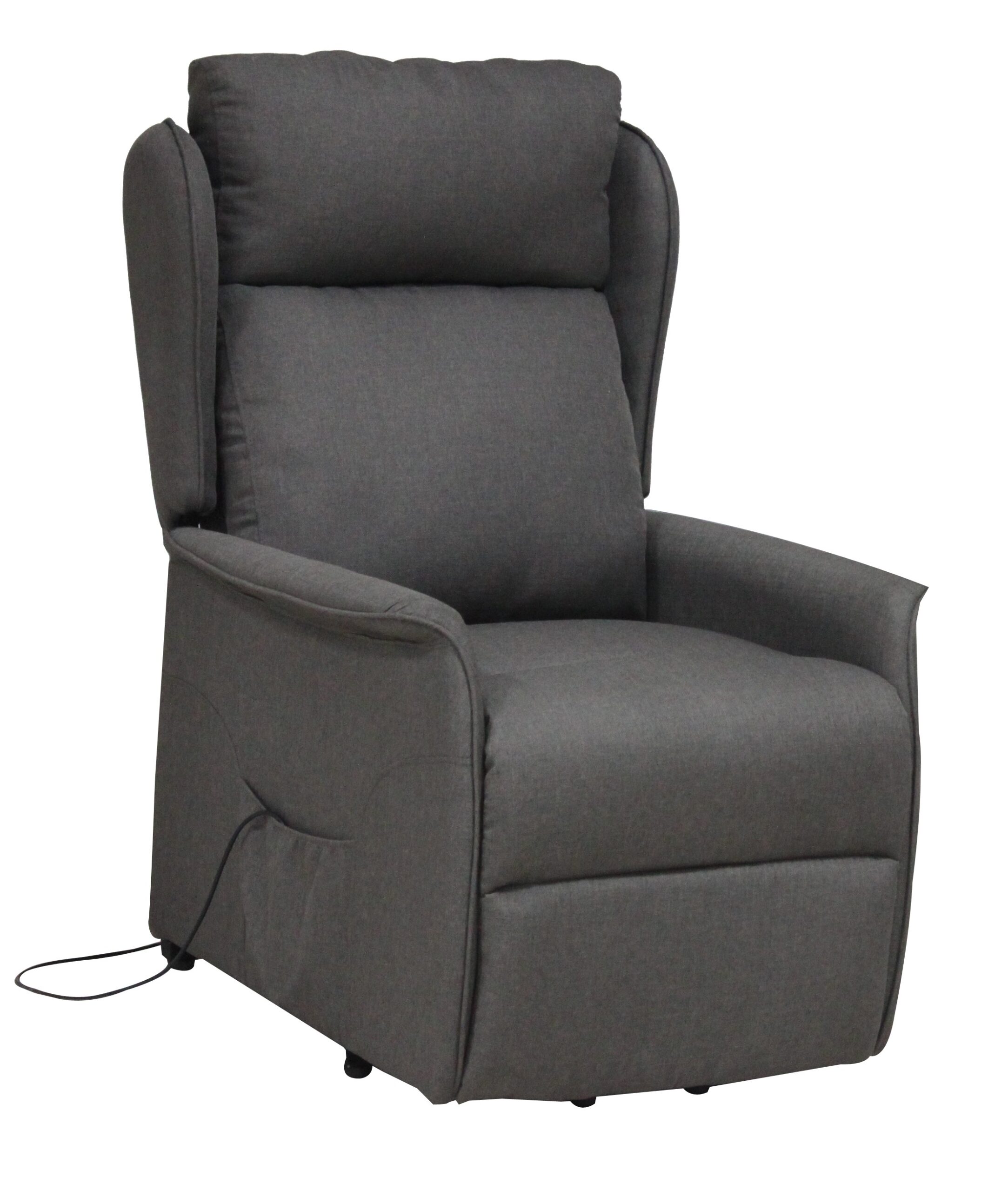 El sillón relax con la función de levanta personas eléctrico está tapizado en tejido acrílico color gris oscuro tipo chenilla, lo convierte en un sillón ideal para personas con movilidad reducida ya que se adapta perfectamente a sus necesidades. Tiene un diseño muy elegante y atemporal y su tejido lo hace muy funcional a la hora de la limpieza.