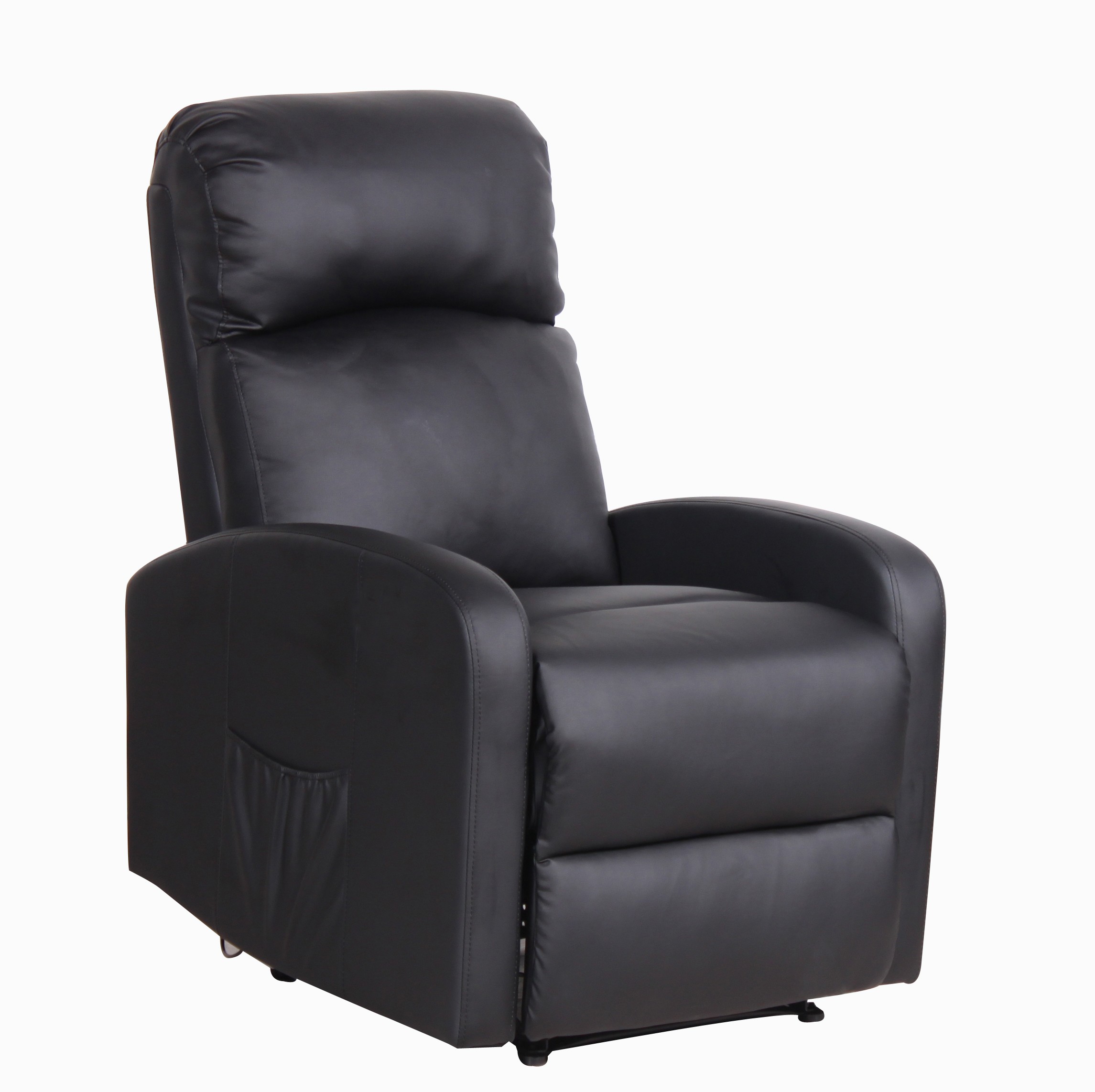 El sillón relax manual está tapizado en tejido símil piel color negro.