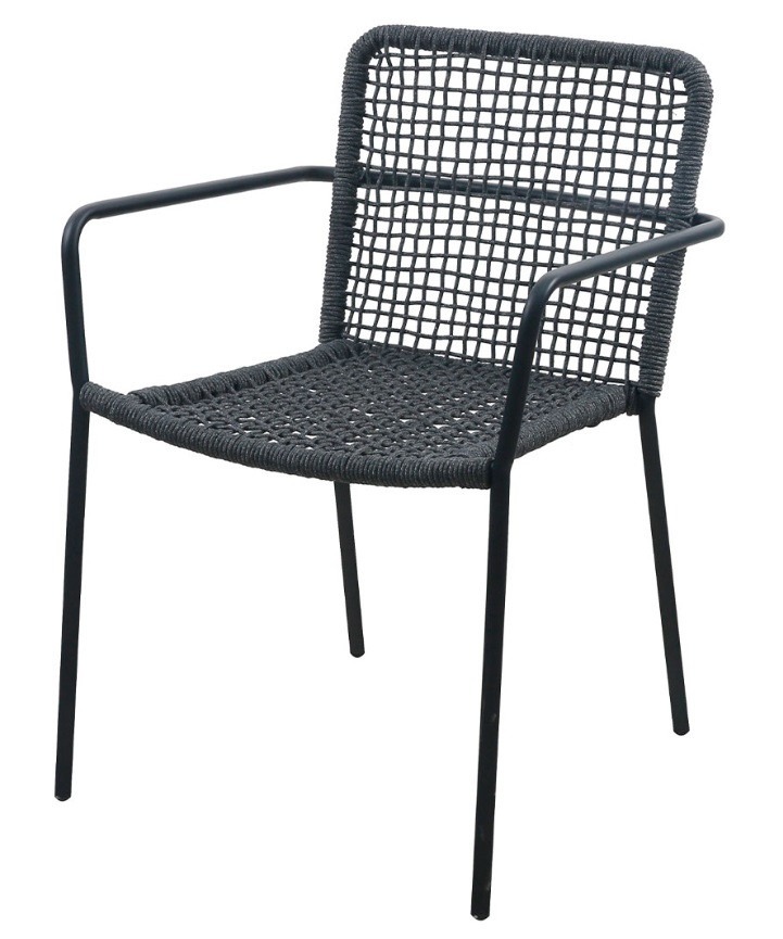 Sloth es un sillón fabricado en estructura de hierro pintado para exterior, asiento y respaldo tejido en cuerda trenzada. Es ideal para terrazas de restaurantes y bares donde busquen comodidad.