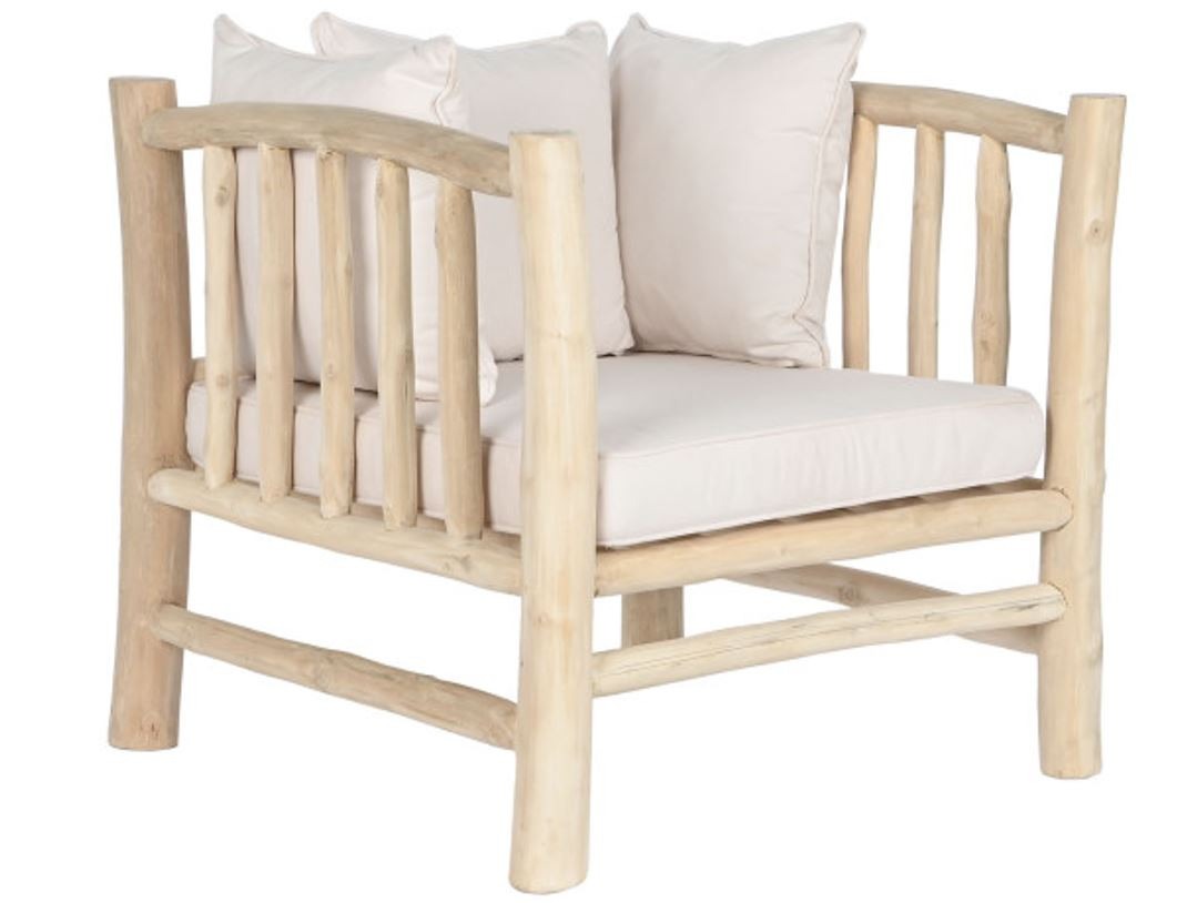 Este sillón en teca y poliéster, perfecto para recuperar el exotismo de cualquier establecimiento.