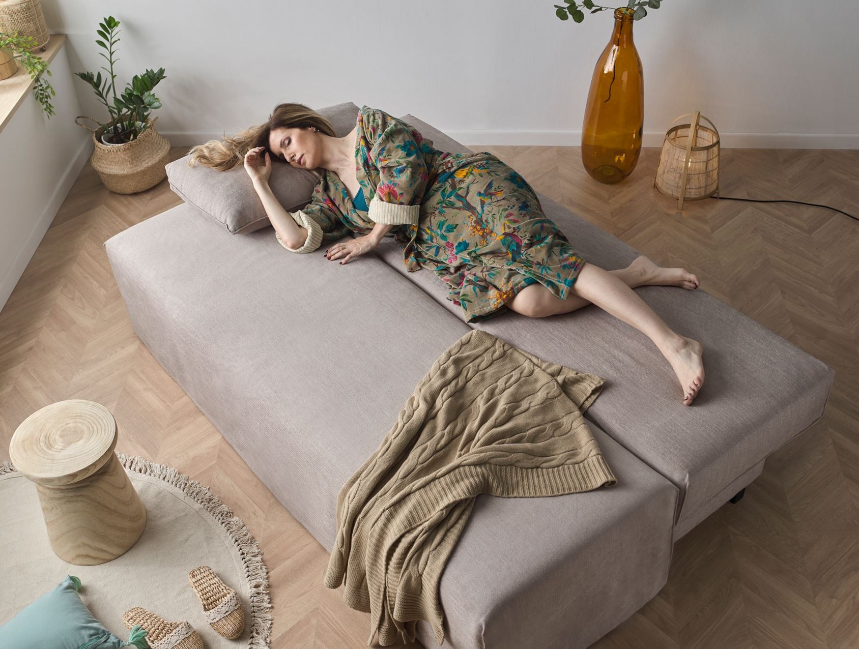 Sofá cama Historia, sistema apertura deslizante y con cajón interior.
