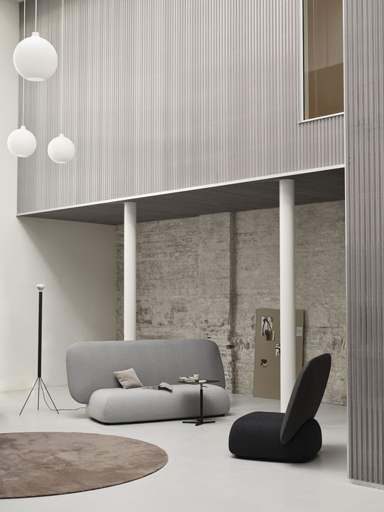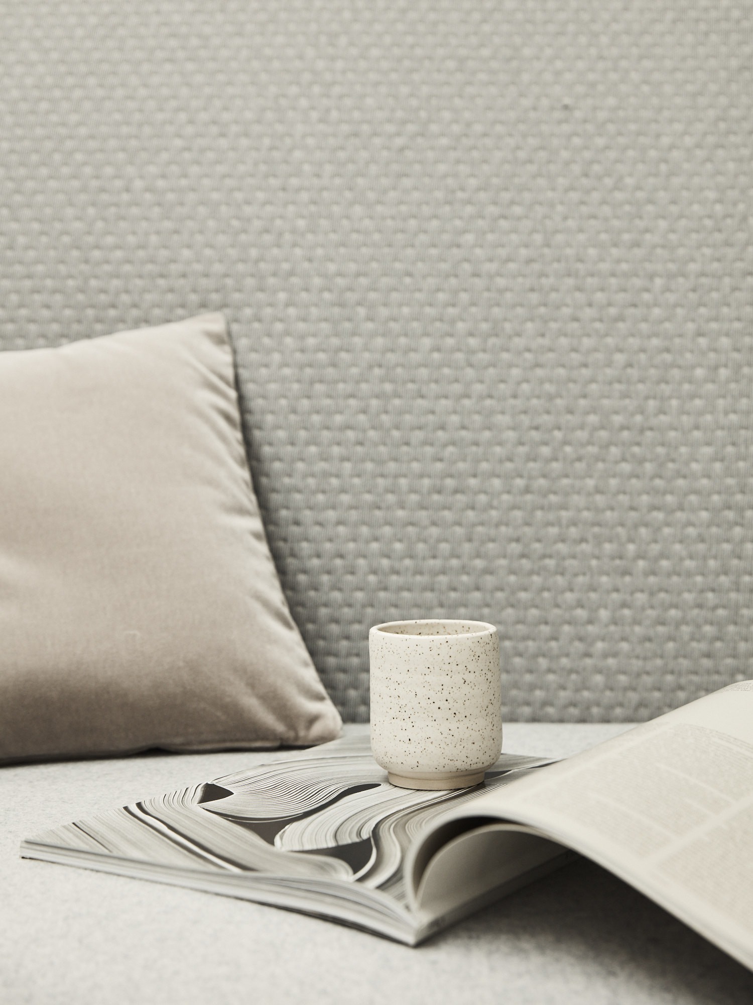 Sofá Halo, tapizado y con un respaldo que ayuda a mejorar la acústica del espacio .