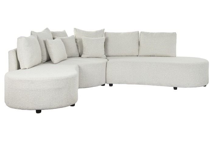 El sofá modular en poliester y madera con acabado en borreguito es perfecto para dar un toque moderno a cualquier estancia.