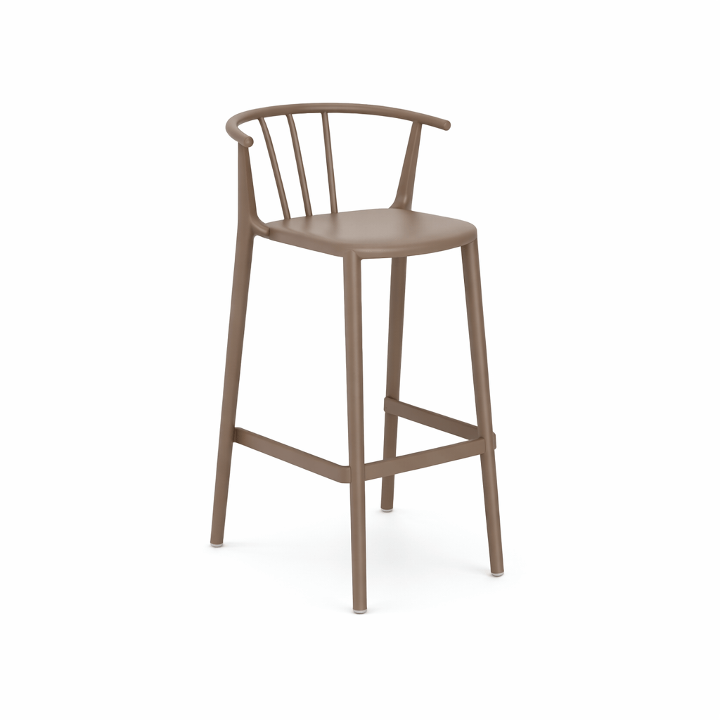 Taburete alto Woody de Resol, fabricado con estructura inyectada en fibra de vidrio.
